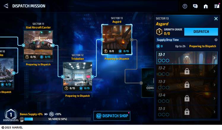 -Com o tema Asgard, o novo setor funcionará da mesma forma como os demais, porém sendo um pouco mais difícil e aumentando a quantidade de prêmios (Energia, Pacote de Componentes de Titã, Poeira Dimensional e Fichas de Envio).