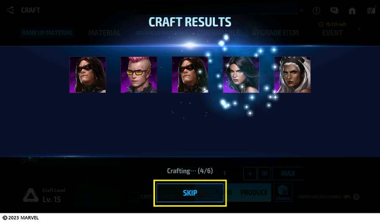 -Dentro da função ‘Fabricar’ o botão exibido durante a fabricação em lote (x5 ~ x10) será substituído, antes permitia cancelar a fabricação antes do termino, agora ele vai pular para o resultado final.